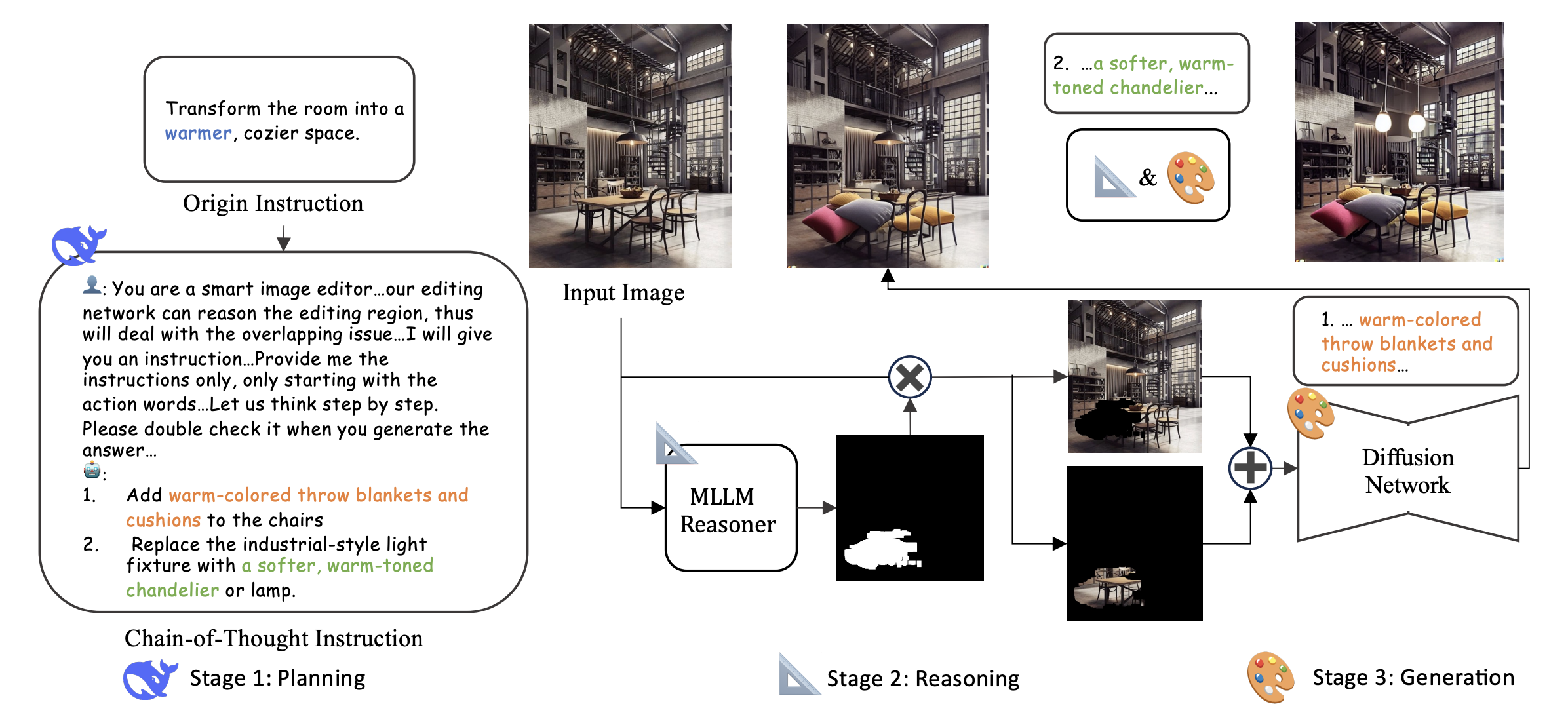 Instruction-based Image Editing with Planning, Reasoning, and Generation